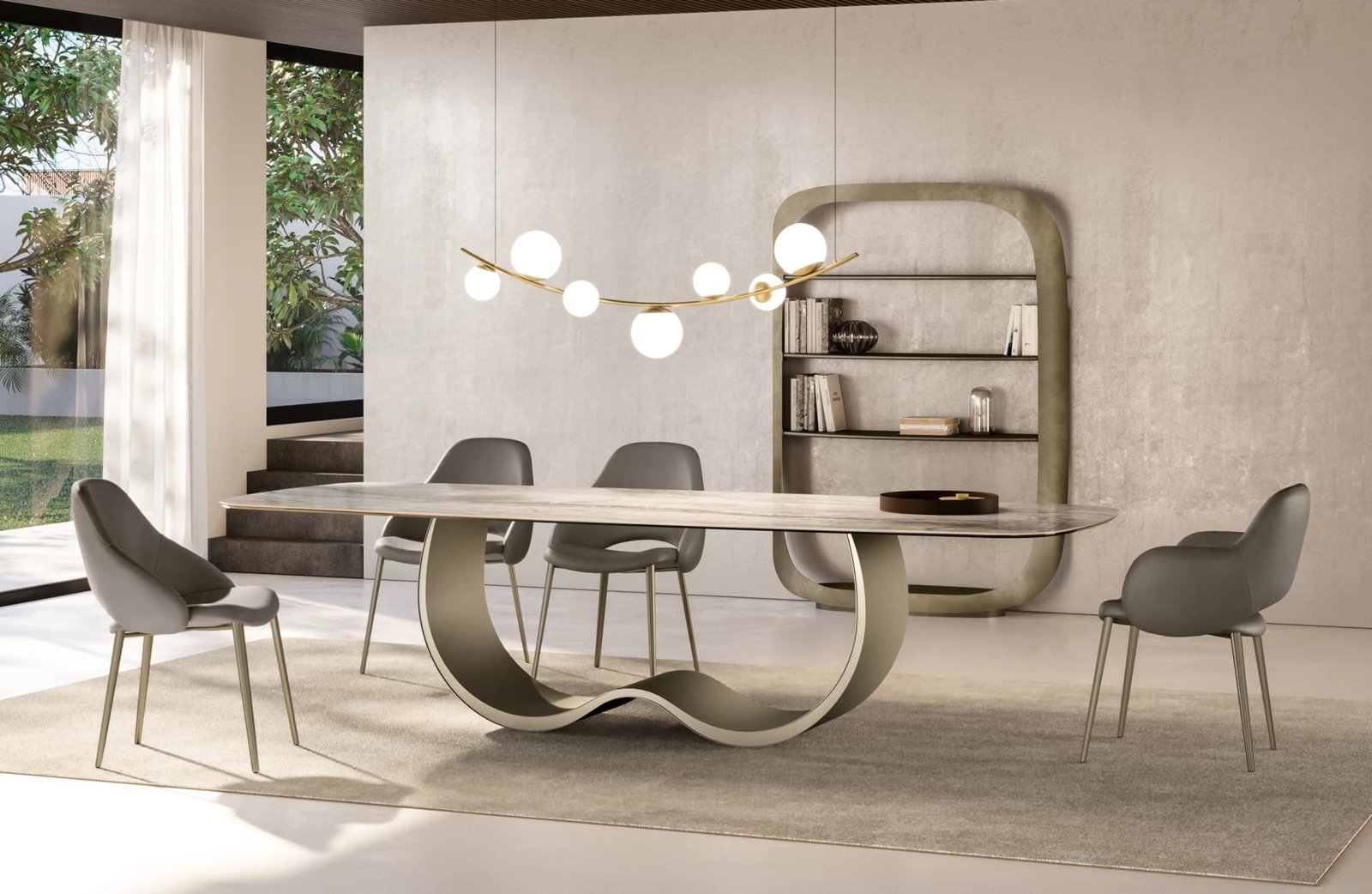 The Alisei Ceramic Top Dining Table by Eforma features a refined layered base creating dynamic movement and elegance. Sleek ceramic offers a durable sophisticated surface with sculptural base presence. Fully customisable and available in a variety of sizes and finishes. Contact us for the best possible price.