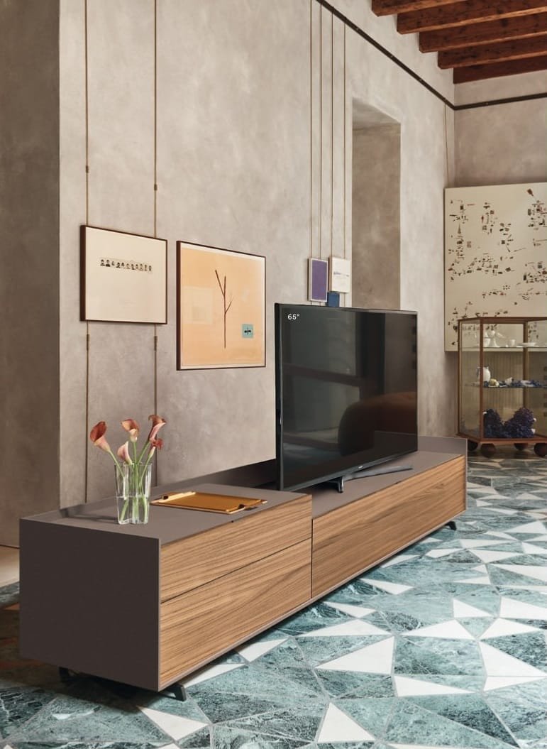 The Cabaret TV Wall Unit by Logo commands attention with its bold design and exceptional craftsmanship. An impeccable fusion of form and function, it seamlessly integrates display and storage, available in an array of finishes.