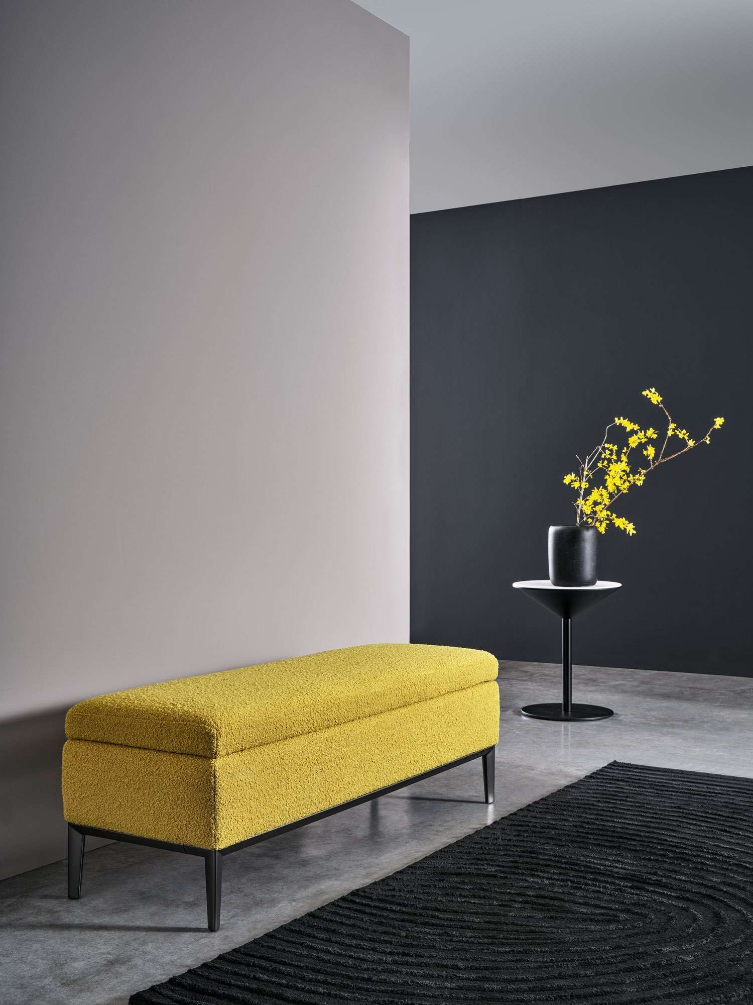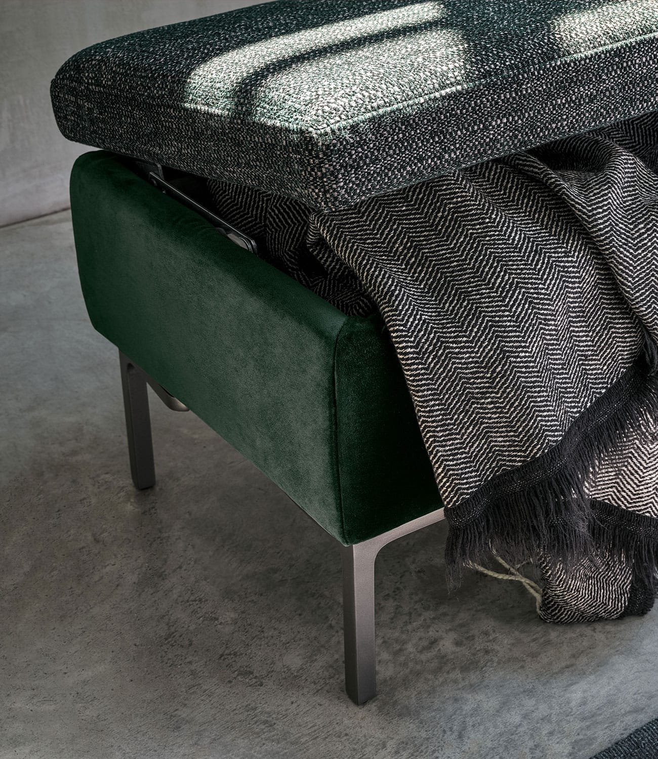 The Coffer Bench by Twils combines functional elegance with modern design. Fully customisable in luxurious fabrics, it provides a sophisticated touch to any space.