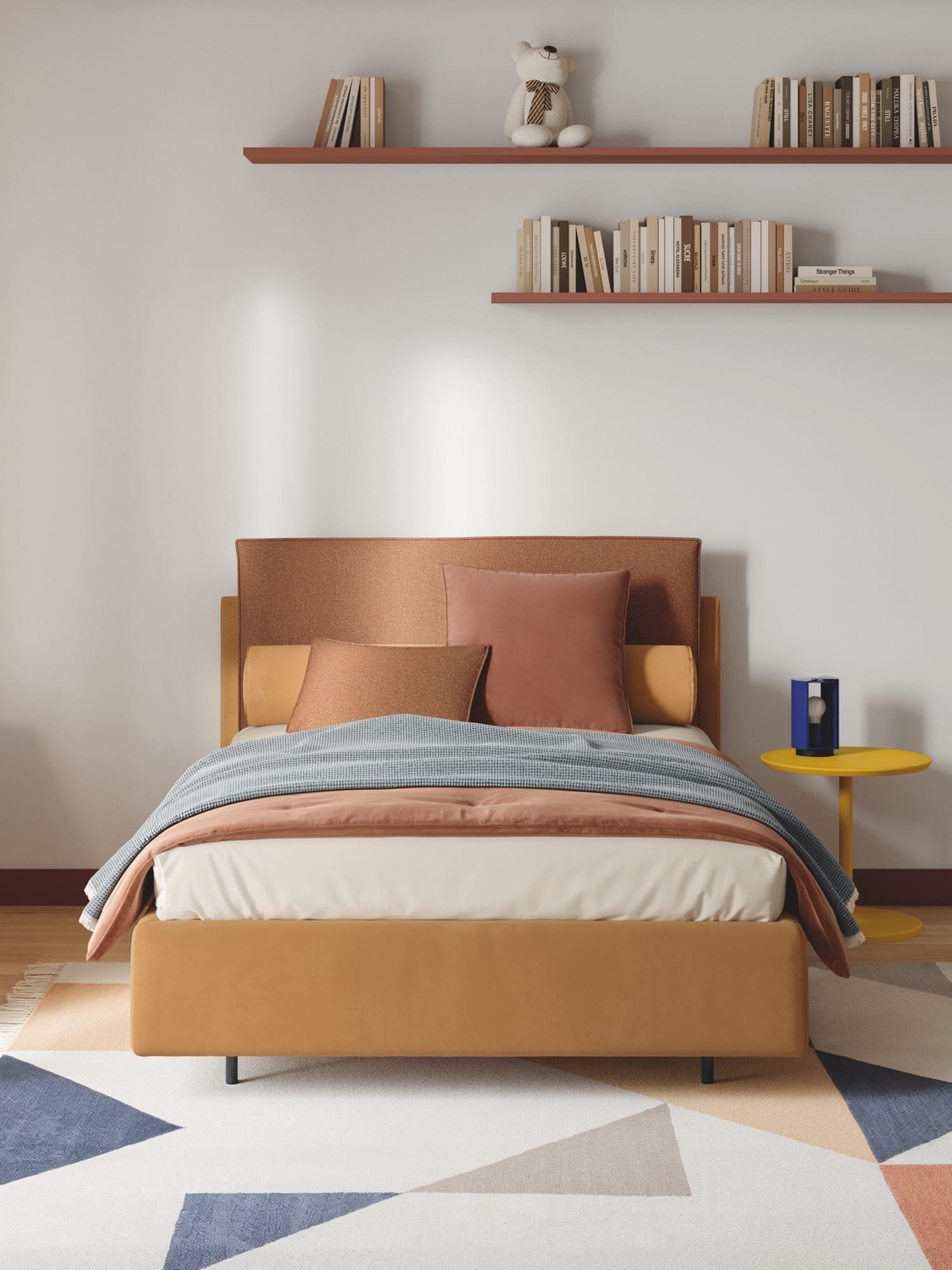 The Frick Single Bed by Twils blends contemporary design with elegance. Customisable in a range of fabrics, this bed adds sophistication and comfort to any bedroom.