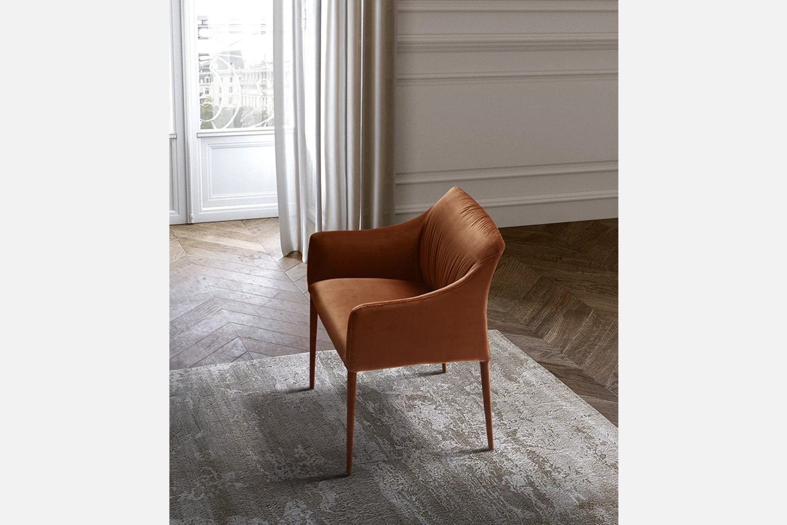 The Isidora Dining Chair by Eforma offers elegant luxurious seating. Refined frame and sumptuous upholstery create a striking addition to any dining room. Fully customisable and available in a variety of sizes and finishes. Contact us for a tailored quote.
