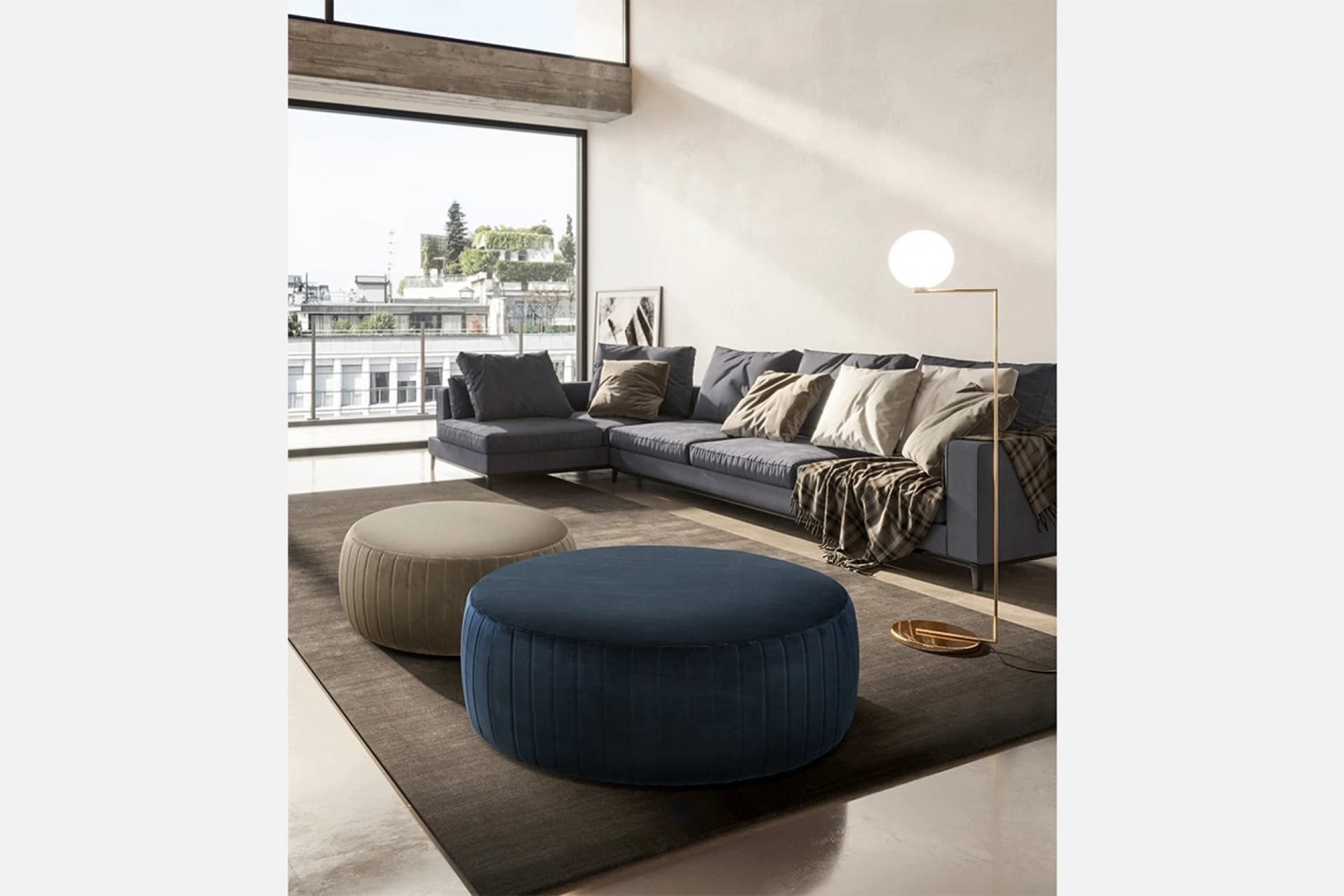 The Nuvola Stitch Footstool by Eforma blends plush comfort with sophisticated stitching details, enhancing the modern aesthetic of any room. Available for full customisation to complement your interior.