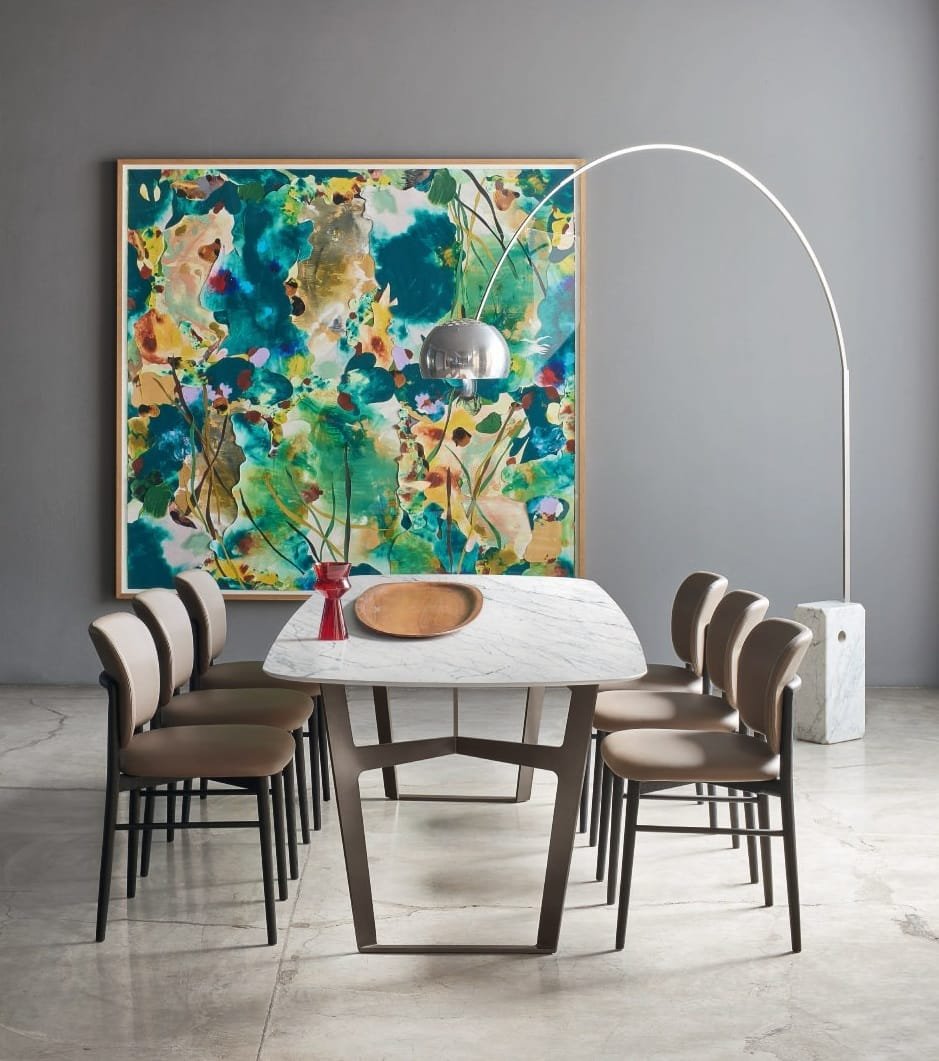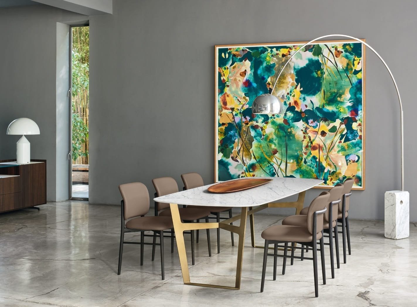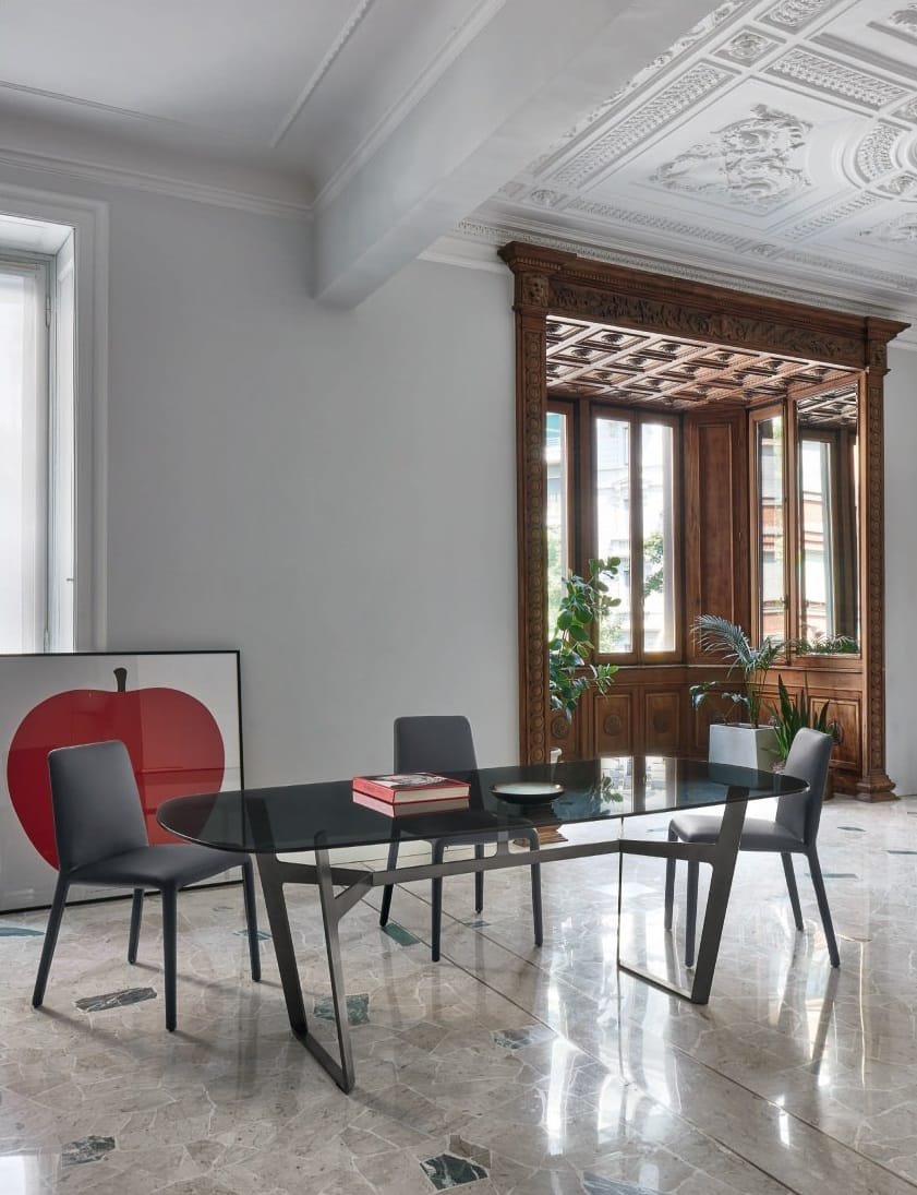 The Obi Dining Table by Logo combines luxurious materials with refined design, making it the ideal centerpiece for any distinguished dining area. Customization opportunities ensure it complements your unique aesthetic preferences.