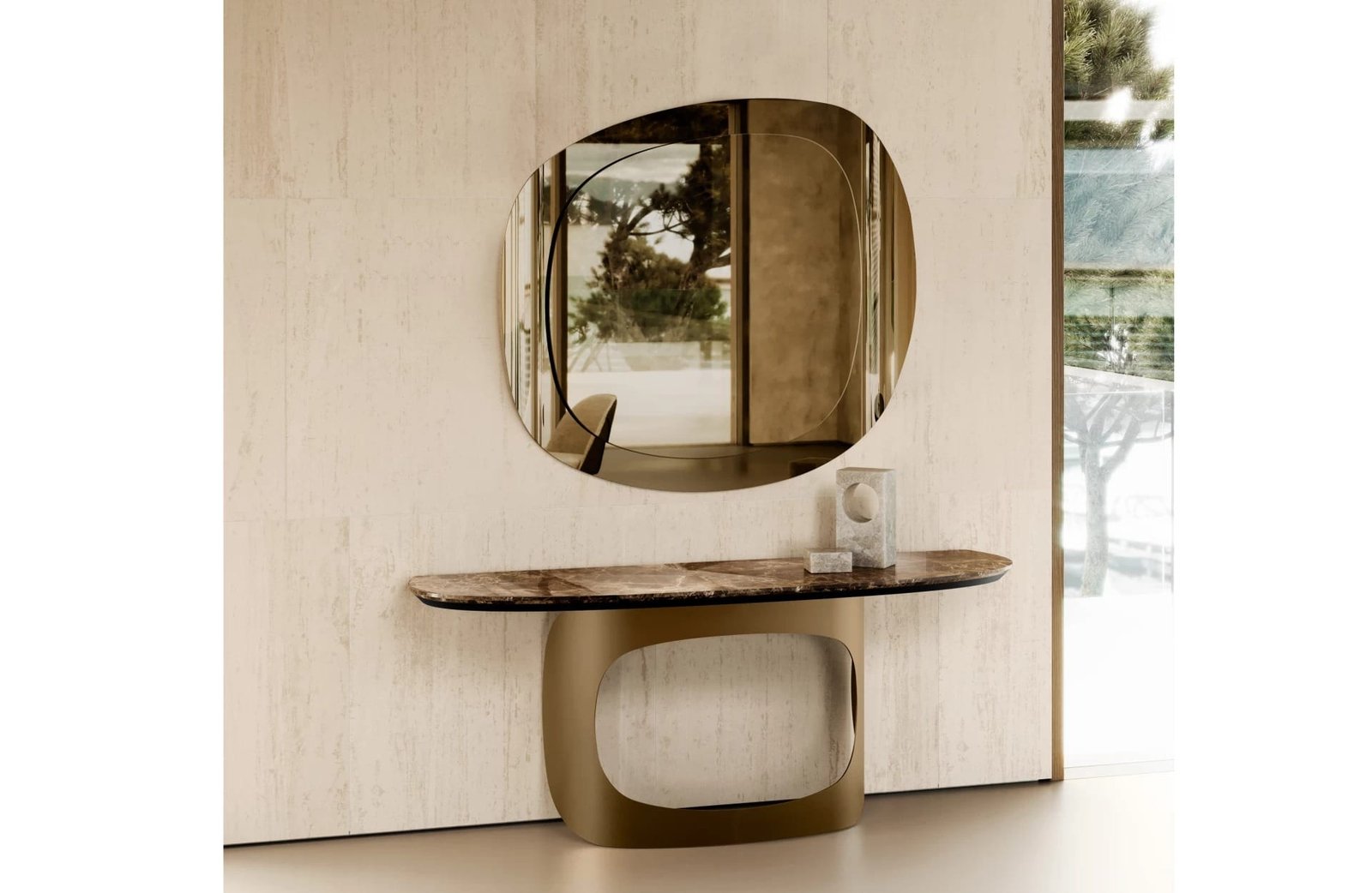 The Polifemo Marble Top Console Table by Eforma exudes elegance and sophistication. Luxurious marble pairs beautifully with modern base as statement piece. Fully customisable and available in a variety of sizes and finishes. Contact us for a personalised quote.