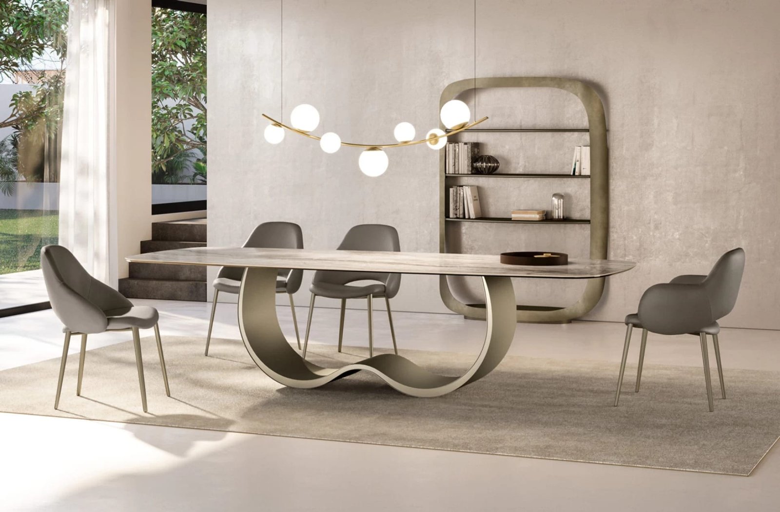 The Silhouette Dining Chair by Eforma combines contemporary elegance with its sleek frame and luxurious cushioning, making it an ideal addition to modern dining spaces. Available for full customisation.