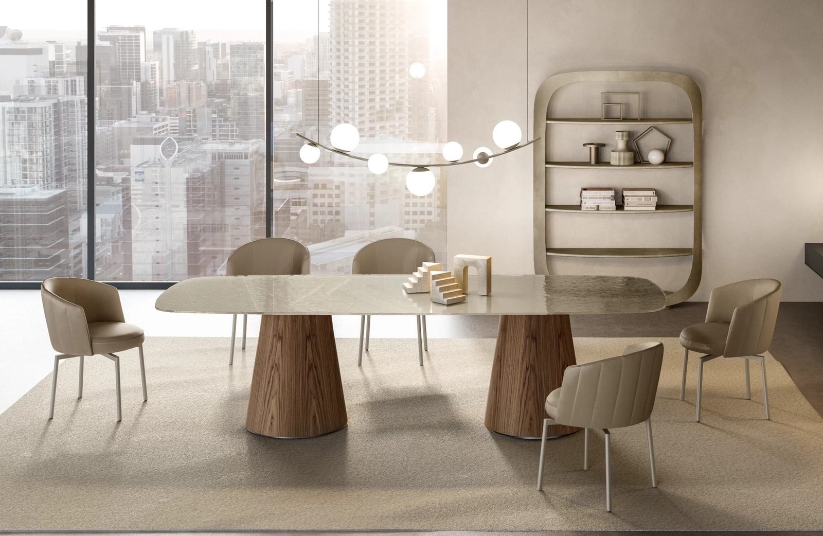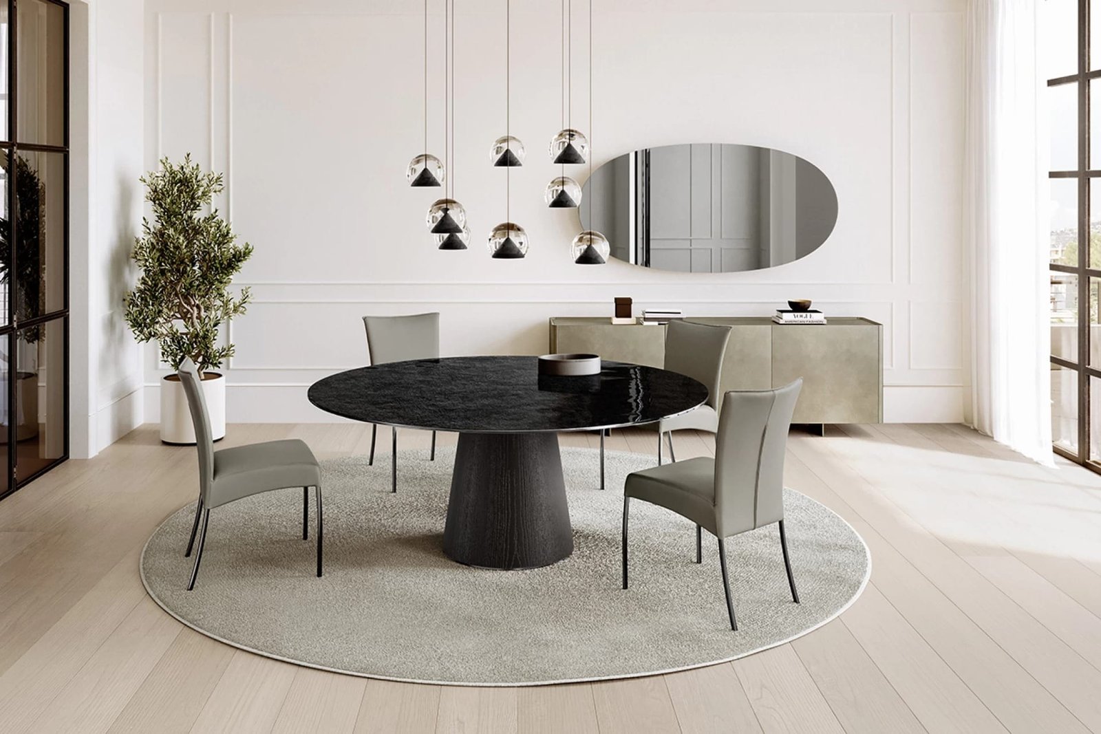 The Teo Glass Top Dining Table by Eforma creates a light, airy feel while maintaining sophisticated modern aesthetics. The sleek glass pairs with a stylish base. Fully customisable and available in a variety of sizes and finishes. Contact us for the best possible price.