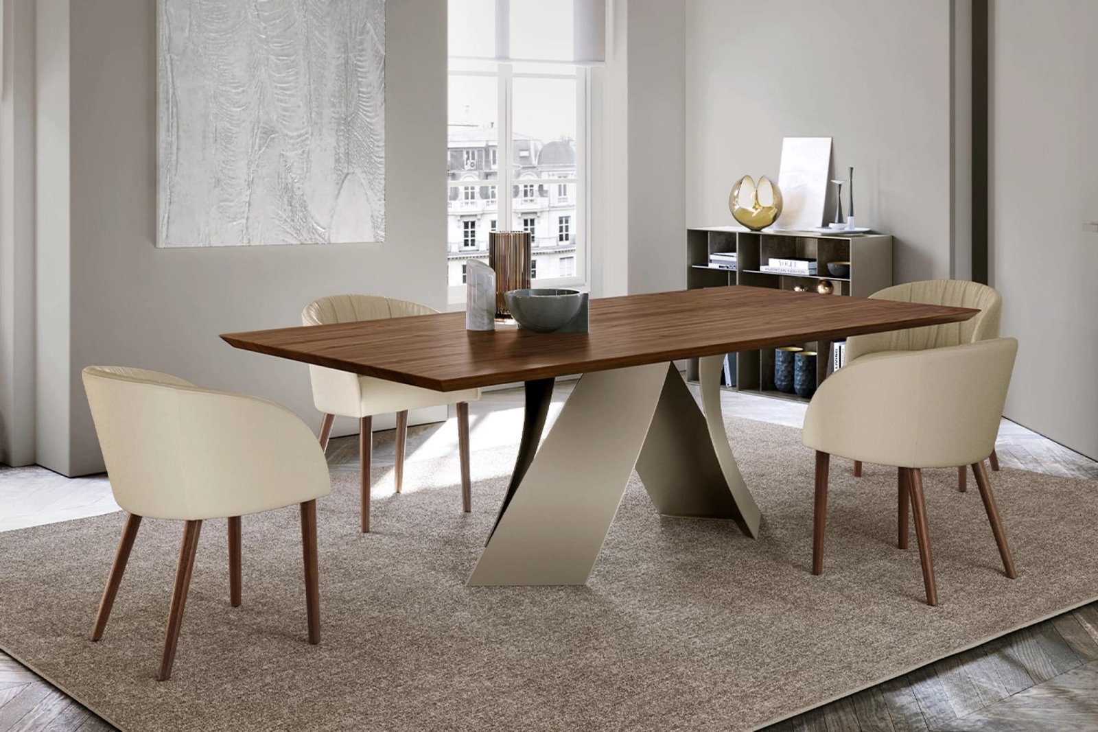 The Twist Wooden Top Dining Table by Eforma harmonises natural materials with modern design. The timber adds warmth and texture while the refined base provides contemporary edge. Fully customisable and available in a variety of sizes and finishes. Contact us for a personalised quote.